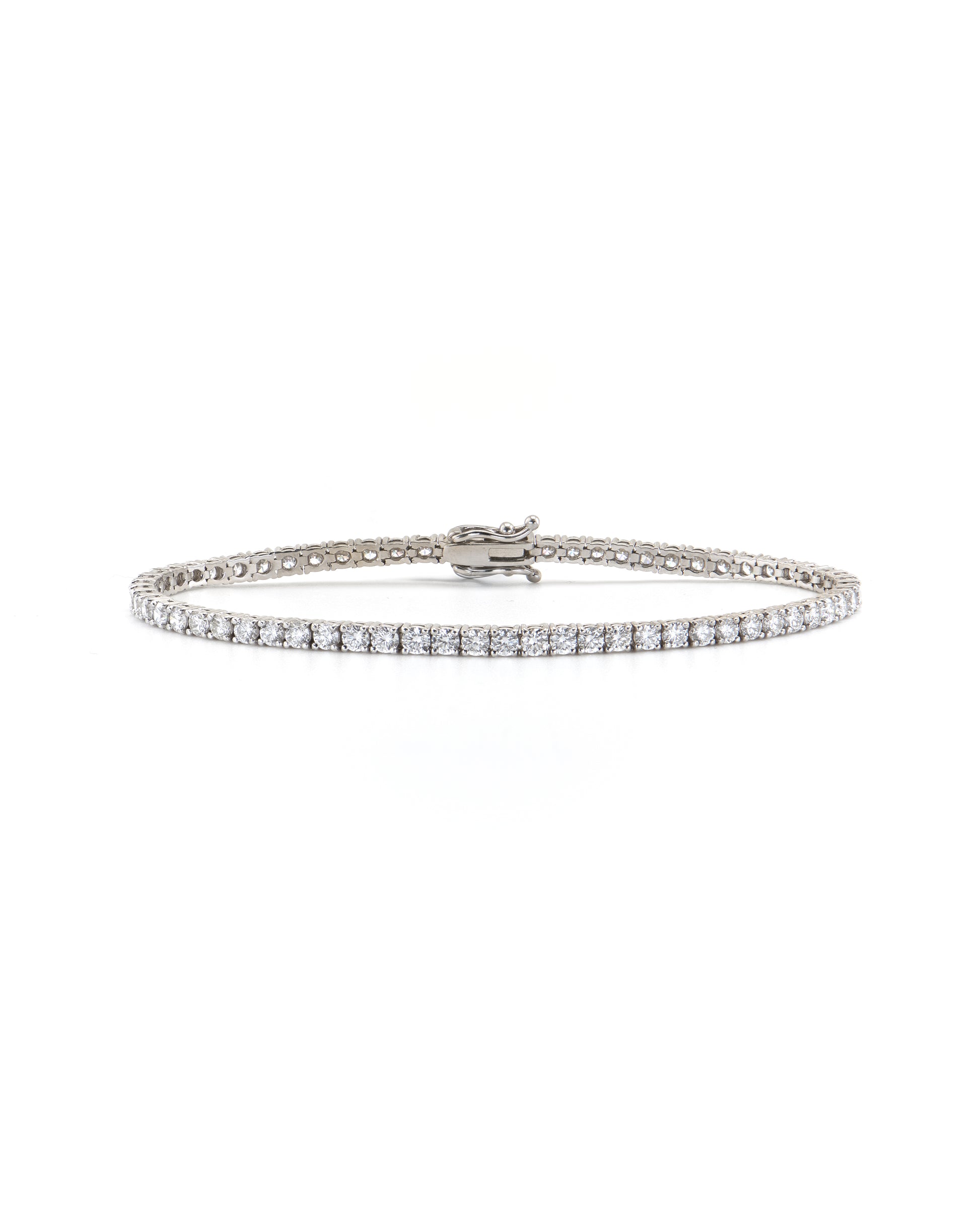 This classic tennis bracelet uses minimal metal to allow the diamonds to stand out without a heavy metal appearance.