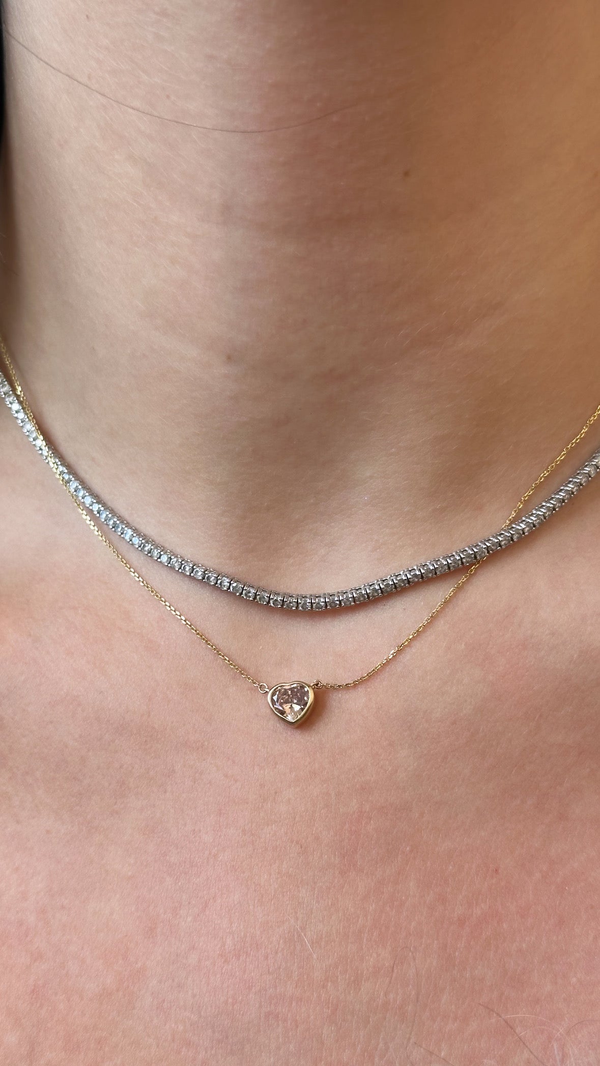 This beautiful heart diamond pendant necklace features a sleek and elegant design in 18k gold. Perfect for layering or as a subtle statement piece.