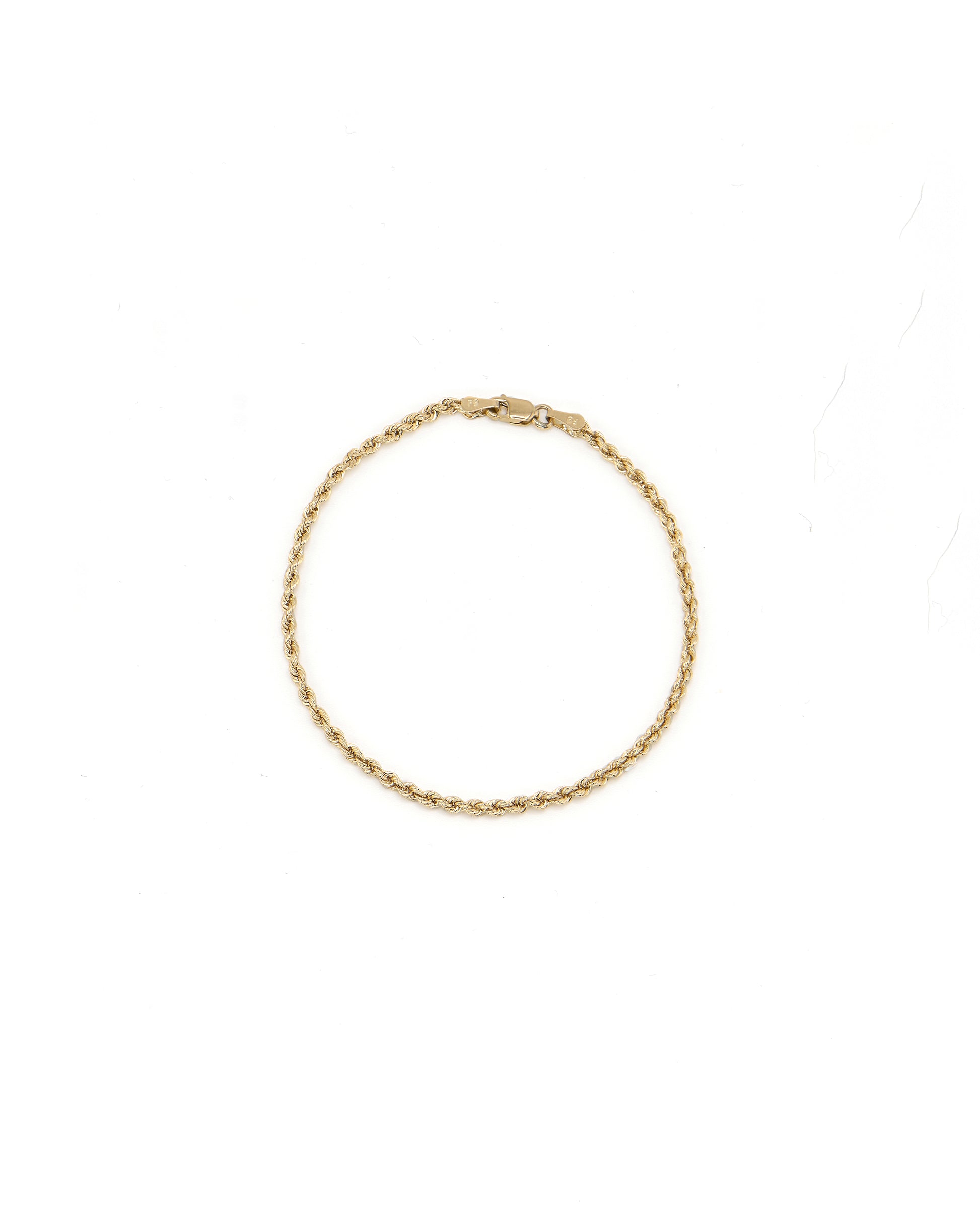 This Yellow Gold Rope Chain Bracelet features a classic twisted rope design. The bracelet is elegant and timeless, perfect for everyday wear or for layering with other pieces.