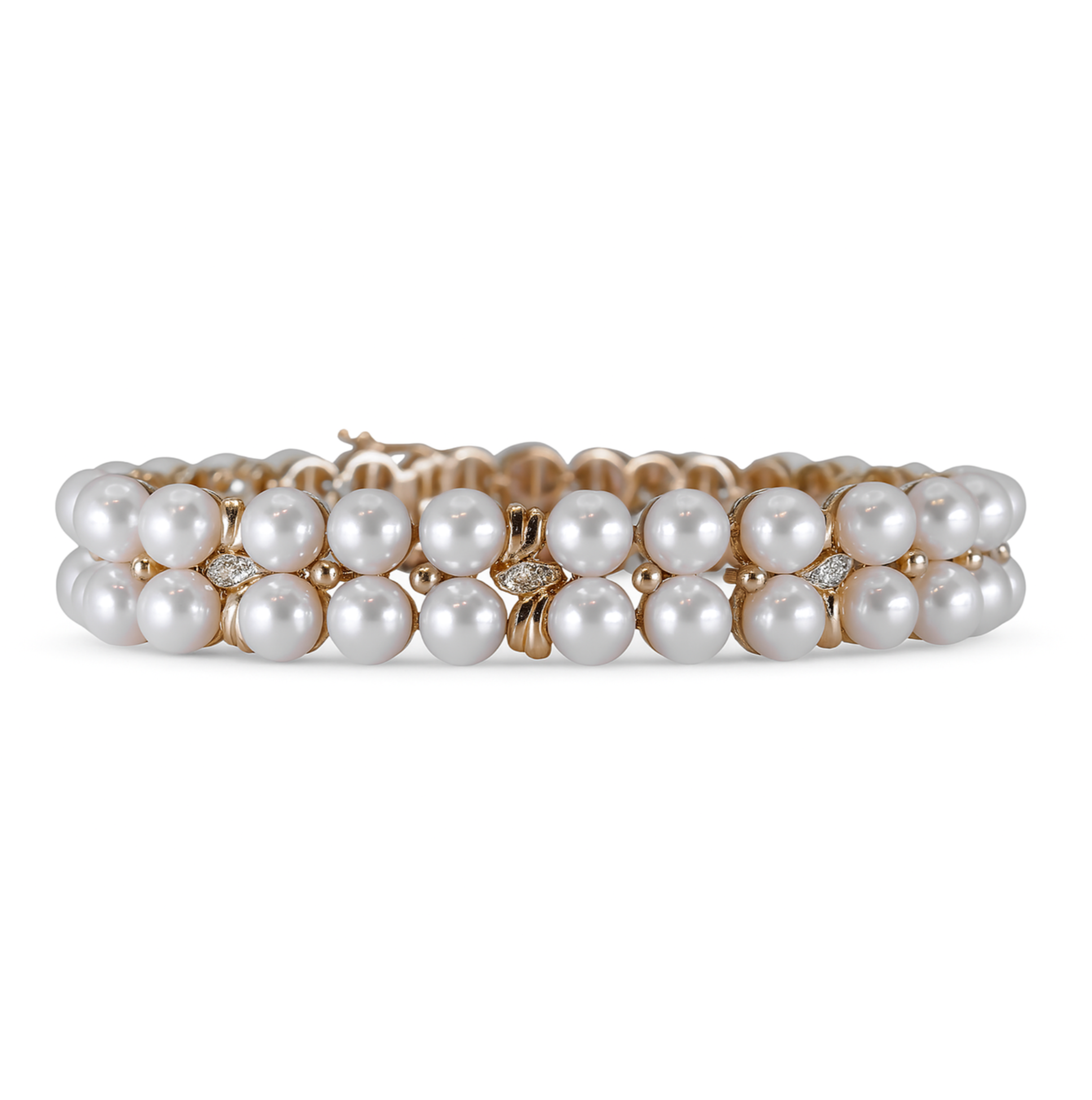This beautiful vintage double row peral bracelet is crafted in: